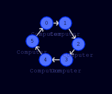 We also see that the directions of movement of the tokens given by the branch number are displayed. Due to these inputs, we have created a directed graph on which our tokens can rotate eternally in the circular structure (at least as long as there are no disturbing influences from outside).